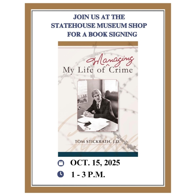 The Statehouse Museum Shop will welcome author and longtime public servant Tom Stickrath for a signing of his book "My Life of Managing Crime" on Wednesday, Oct. 15 from 1 until 3 p.m.