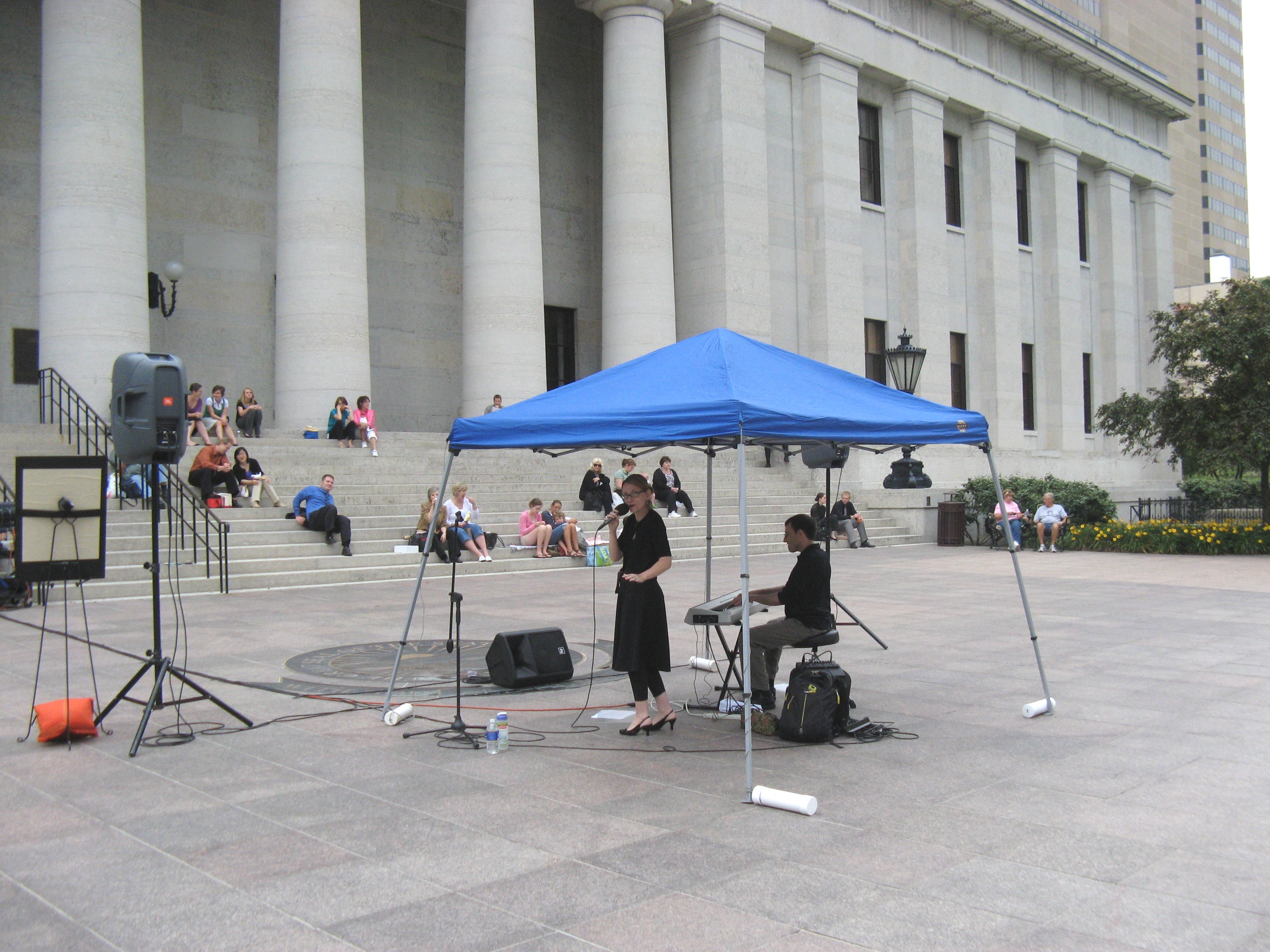 Jazz musicians Erik Augis and Lisa Clark Duo from the Creekside Blues and Jazz Festival in Gahanna gave a free performance at the Ohio Statehouse on June 12, 2009. You are invited to bring your lunch from noon to 1 p.m. and enjoy Summer Fridays at the Ohio Statehouse from May 29 to Sept. 4, 2009. Check ohiostatehouse.org for more information. Media sponsors: CD101 and WDEM Ch 17 TV.
