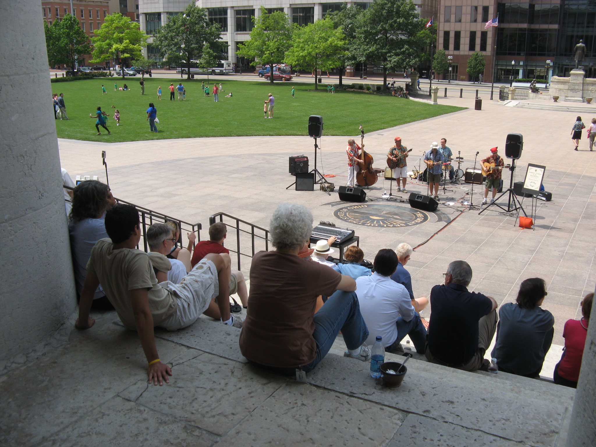 The Idiot Boys kicked off the 2010 free lunch-time performances at the Ohio Statehouse. You are invited to bring your lunch from noon to 1 p.m. and enjoy Summer Fridays at the Ohio Statehouse from May 28 to Aug. 27, 2010. Check ohiostatehouse.org for more information. Media sponsors: CD101 Radio, Time Warner Cable and WBNS 10 TV.