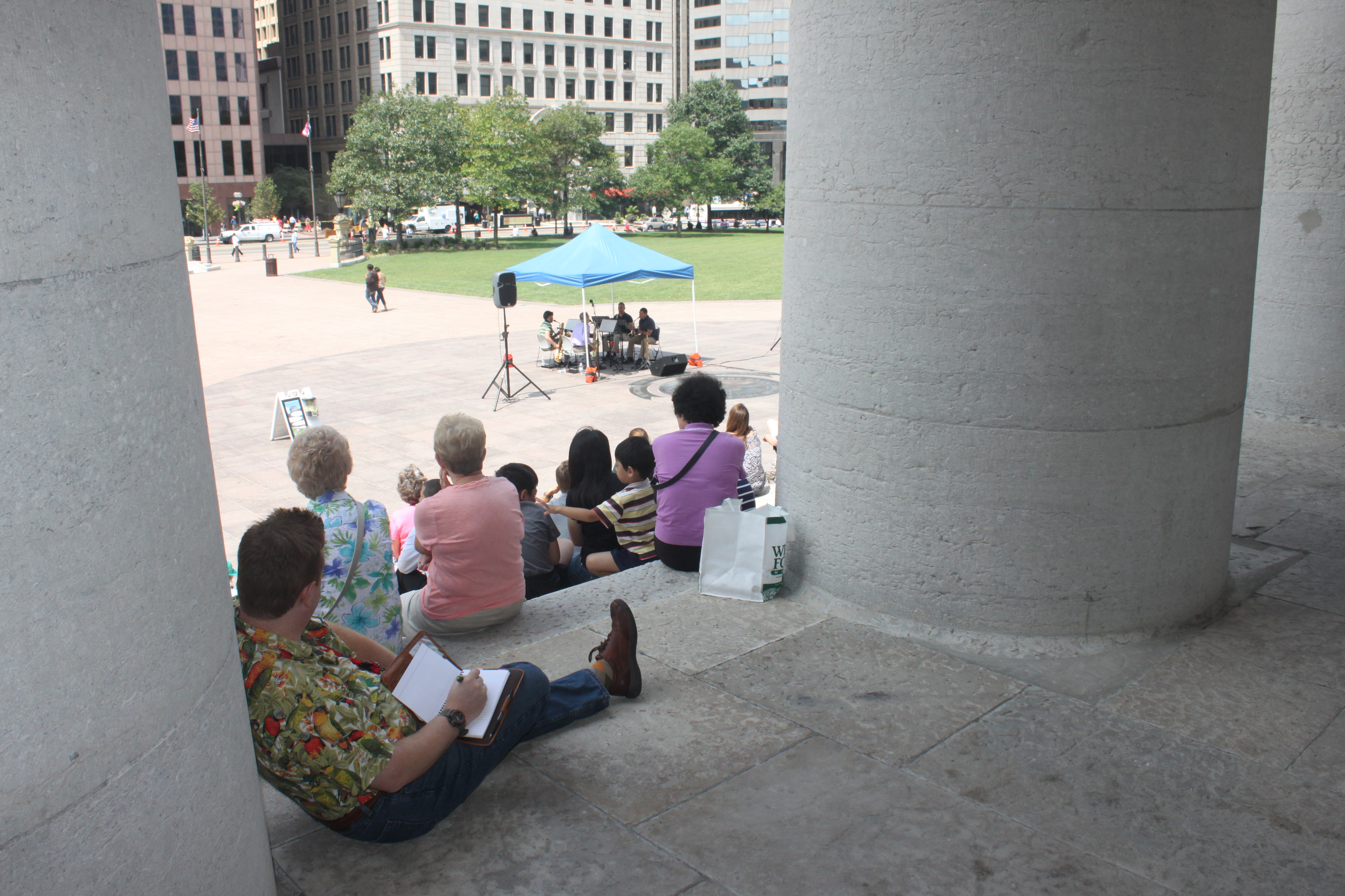 High Street Sax Quartet performed a free lunch-time concert at the Ohio Statehouse. You are invited to bring your lunch from noon to 1 p.m. and enjoy Summer Fridays at the Ohio Statehouse from May 28 to Aug. 27, 2010. Check ohiostatehouse.org for more information. Media sponsors: CD101 Radio, Time Warner Cable and WBNS 10 TV.