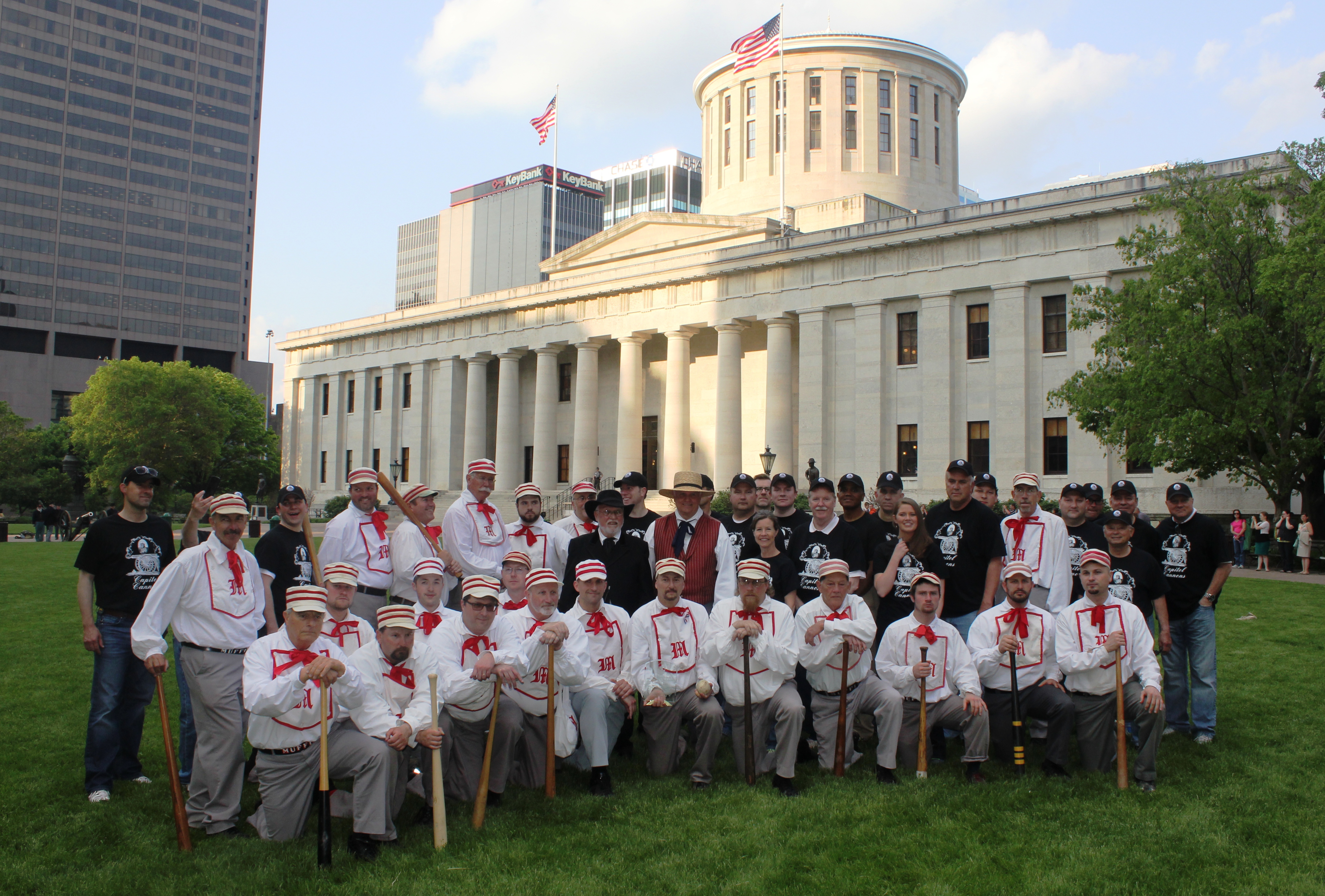 Members of the 130th Ohio General Assembly played a base ball game against the Ohio Village Muffins, Tuesday, May 20. The 2014 "Capitol Cannons" were skippered by Clay Hall, sports director for ABC6/FOX28. The event featured cannon firings by 1st Ohio Light Artillery, Battery A, a display of historic base ball memorabelia by Tracy Martin, Lincoln portrayed by Robert Brugler and the national anthem sung by the Ohio Village Singers. Concessions will be provided by the Capitol Cafe, operated by Milo’s Catering and Banquet Services.