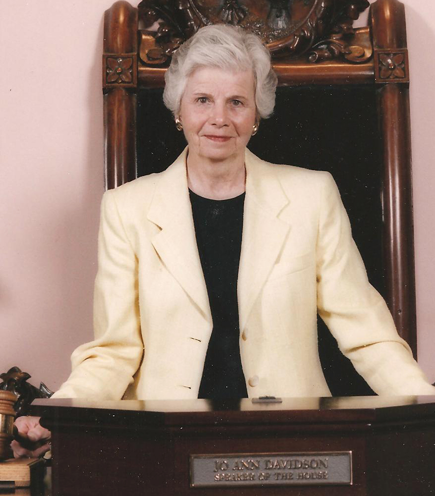Jo Ann Davidson was born on September 28, 1927 in Findlay, Ohio. She was the first woman to serve as the Speaker of the Ohio House of Representatives. She served in the Ohio House for two decades from 1980 to 2000, and held leadership roles since 1985 as assistant minority whip, minority whip and minority leader before her service as speaker from 1995 to 2000.