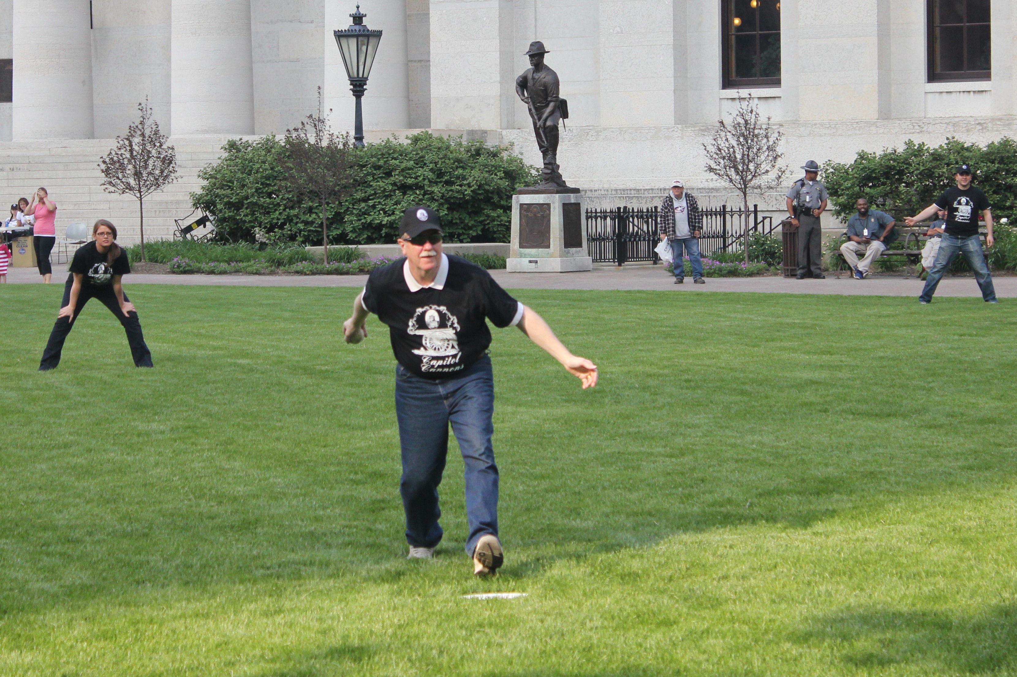 Members of the 130th Ohio General Assembly played a base ball game against the Ohio Village Muffins, Tuesday, May 20. The 2014 "Capitol Cannons" were skippered by Clay Hall, sports director for ABC6/FOX28. The event featured cannon firings by 1st Ohio Light Artillery, Battery A, a display of historic base ball memorabelia by Tracy Martin, Lincoln portrayed by Robert Brugler and the national anthem sung by the Ohio Village Singers. Concessions will be provided by the Capitol Cafe, operated by Milo’s Catering and Banquet Services.