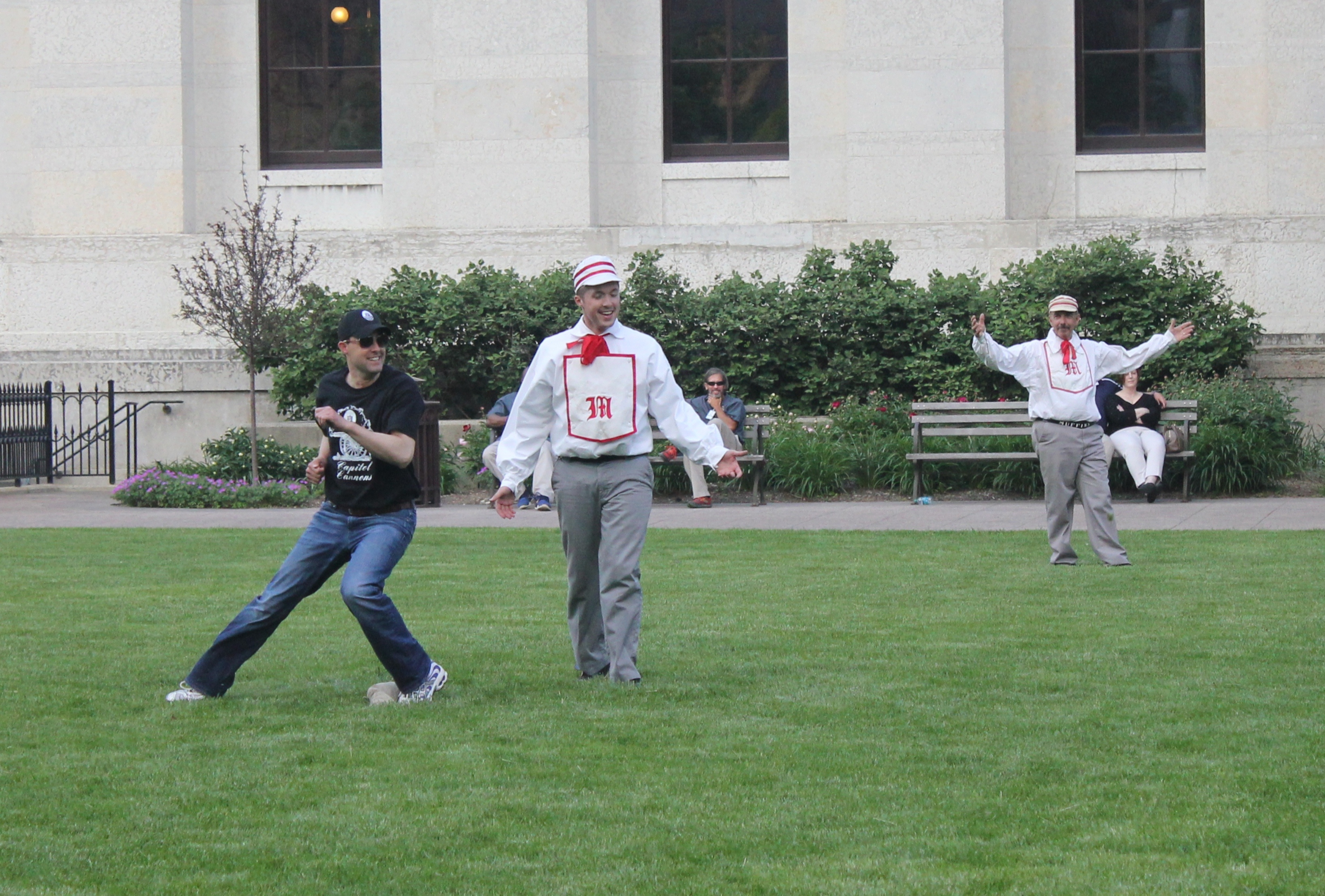 Members of the 130th Ohio General Assembly played a base ball game against the Ohio Village Muffins, Tuesday, May 20. The 2014 "Capitol Cannons" were skippered by Clay Hall, sports director for ABC6/FOX28. The event featured cannon firings by 1st Ohio Light Artillery, Battery A, a display of historic base ball memorabelia by Tracy Martin, Lincoln portrayed by Robert Brugler and the national anthem sung by the Ohio Village Singers. Concessions will be provided by the Capitol Cafe, operated by Milo’s Catering and Banquet Services.