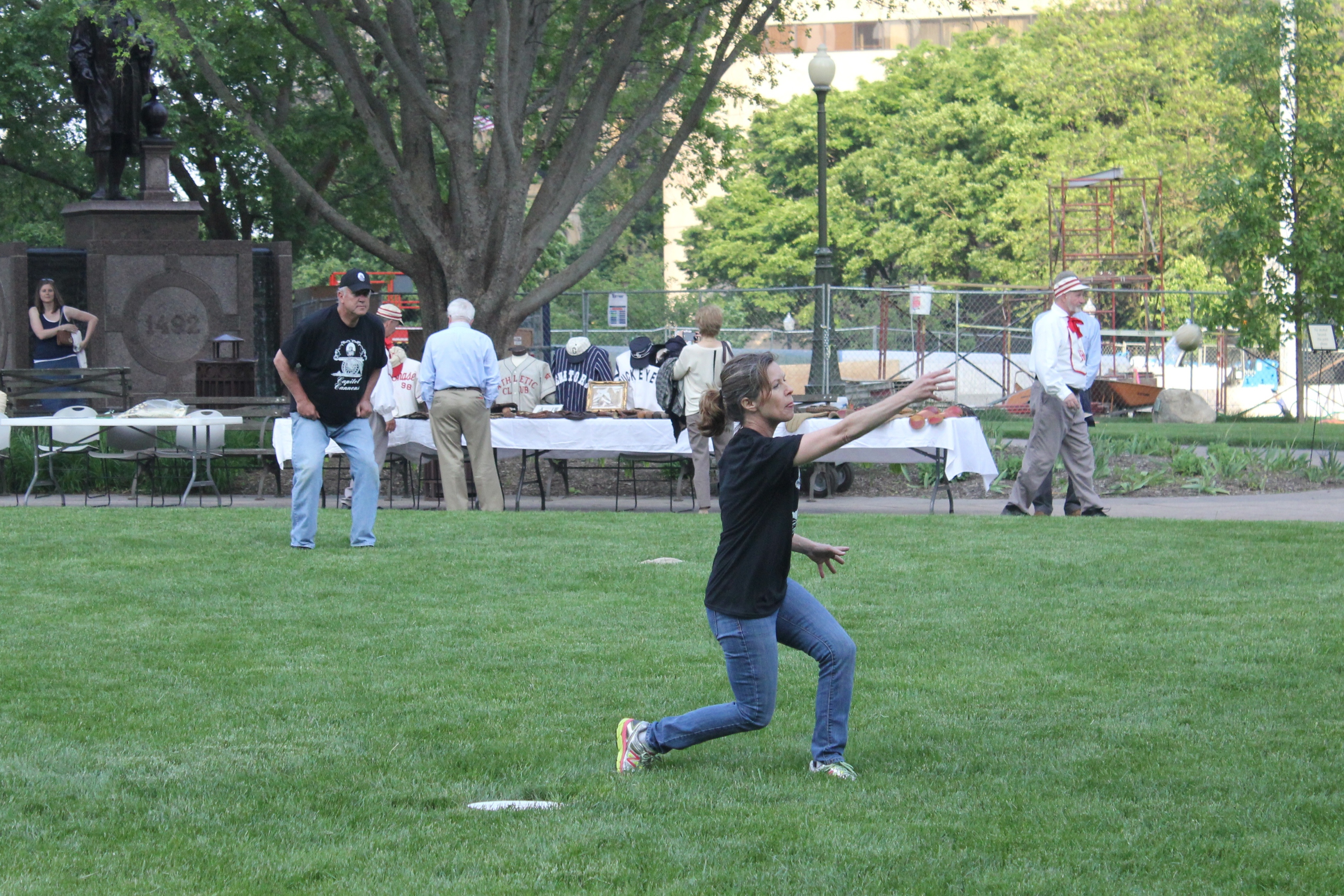 Members of the 130th Ohio General Assembly played a base ball game against the Ohio Village Muffins, Tuesday, May 20. The 2014 "Capitol Cannons" were skippered by Clay Hall, sports director for ABC6/FOX28. The event featured cannon firings by 1st Ohio Light Artillery, Battery A, a display of historic base ball memorabelia by Tracy Martin, Lincoln portrayed by Robert Brugler and the national anthem sung by the Ohio Village Singers. Concessions will be provided by the Capitol Cafe, operated by Milo’s Catering and Banquet Services.