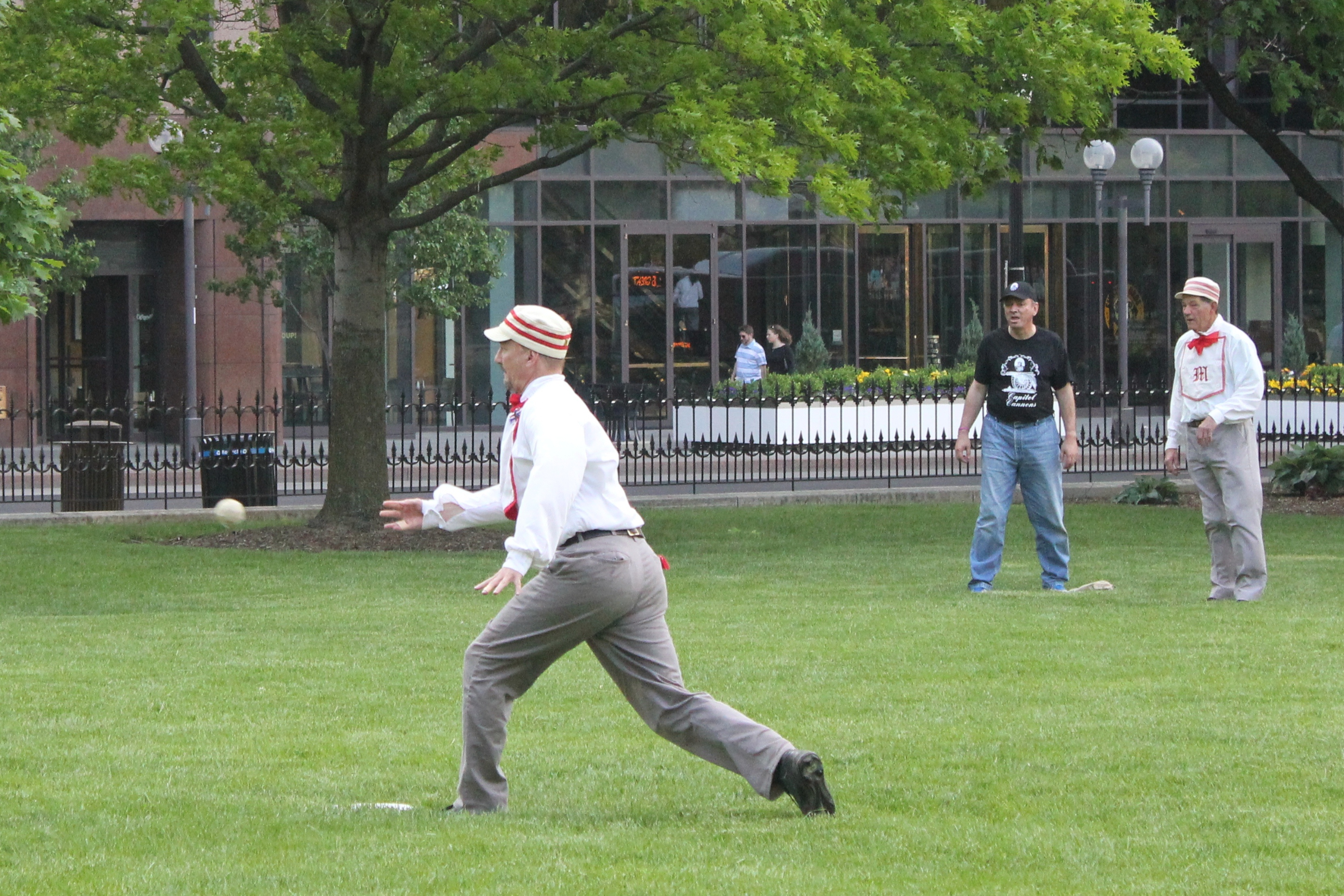 Members of the 130th Ohio General Assembly played a base ball game against the Ohio Village Muffins, Tuesday, May 20. The 2014 "Capitol Cannons" were skippered by Clay Hall, sports director for ABC6/FOX28. The event featured cannon firings by 1st Ohio Light Artillery, Battery A, a display of historic base ball memorabelia by Tracy Martin, Lincoln portrayed by Robert Brugler and the national anthem sung by the Ohio Village Singers. Concessions will be provided by the Capitol Cafe, operated by Milo’s Catering and Banquet Services.