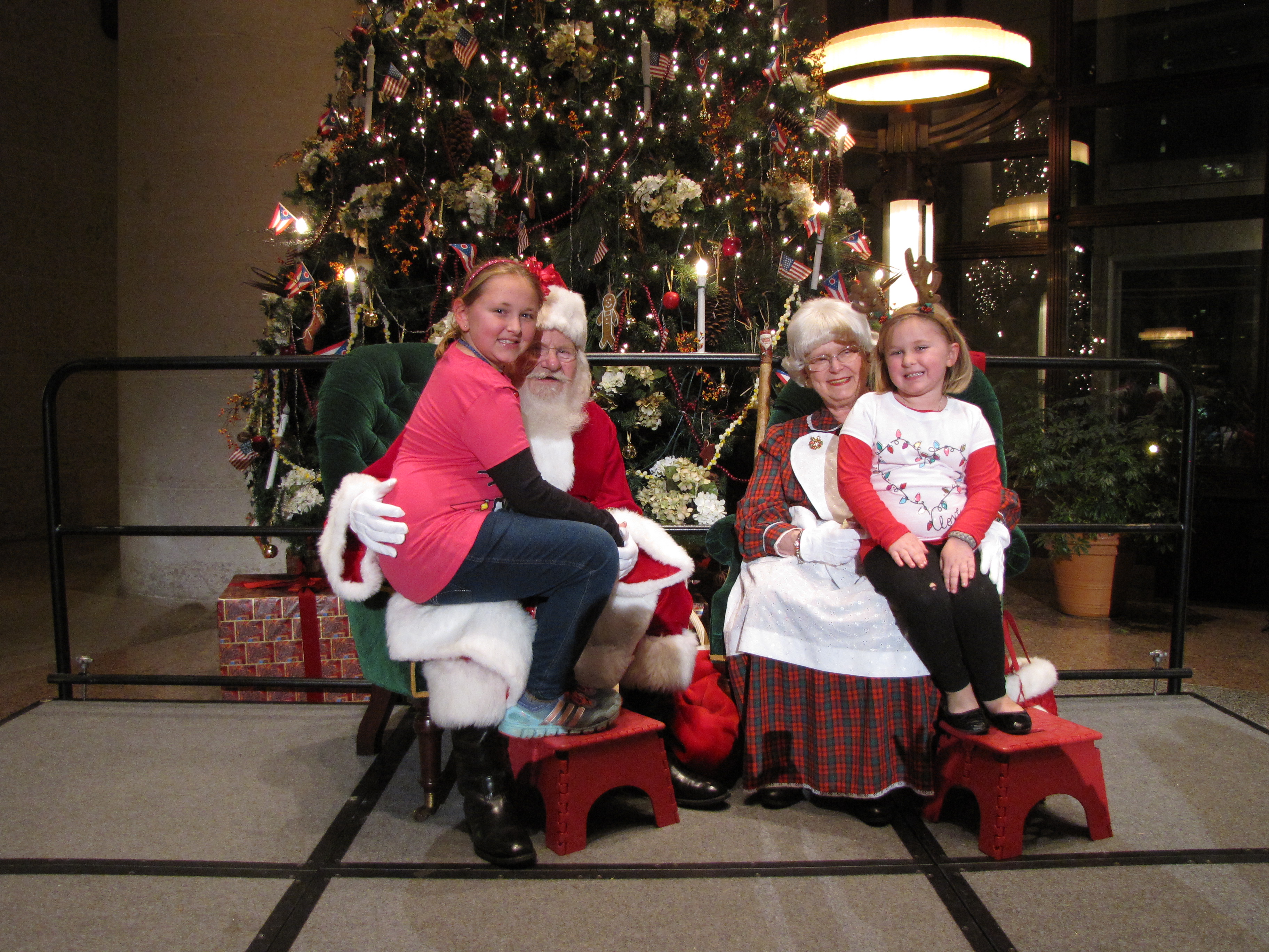 The Ohio Statehouse Holiday Festival and Tree Lighting on Dec. 3, 2013 featured bright lights, community mascots, music, and many activities for kids. Neighbor businesses donated food and drink. Free pictures with Santa and Mrs. Claus are posted on the Statehouse Web site. Click on the picture several times for the highest resolution file. Right click to download your souvenir. Happy Holidays!
