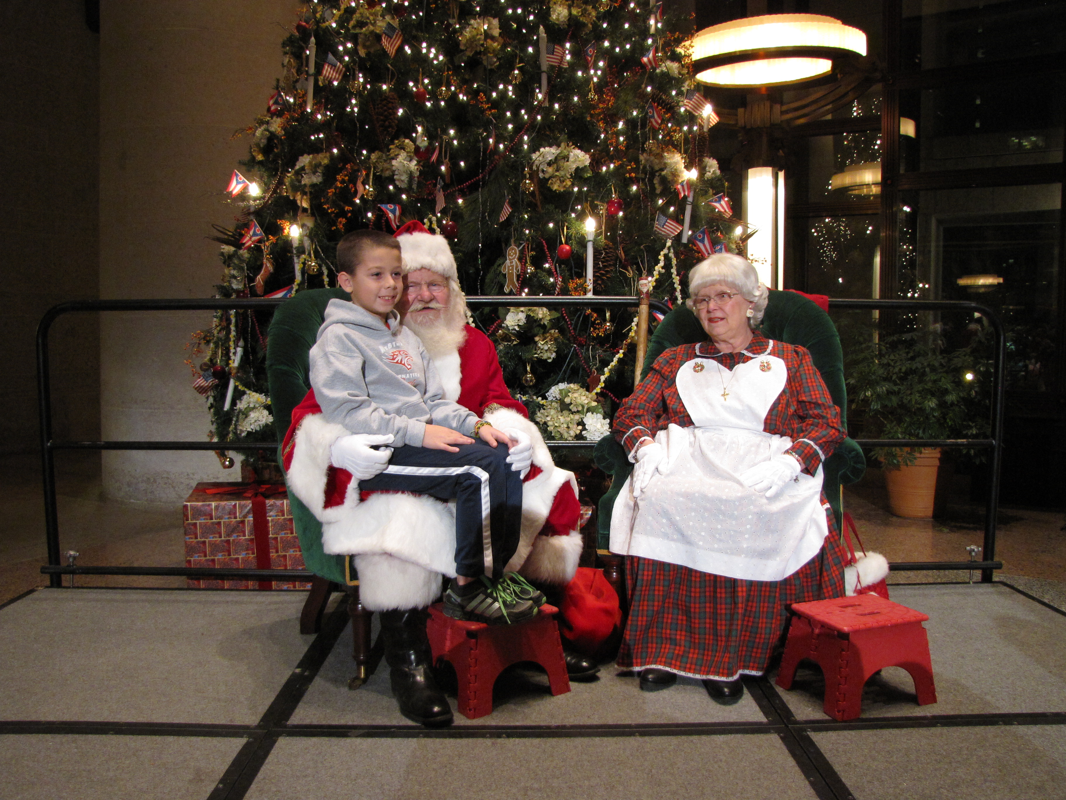 The Ohio Statehouse Holiday Festival and Tree Lighting on Dec. 3, 2013 featured bright lights, community mascots, music, and many activities for kids. Neighbor businesses donated food and drink. Free pictures with Santa and Mrs. Claus are posted on the Statehouse Web site. Click on the picture several times for the highest resolution file. Right click to download your souvenir. Happy Holidays!