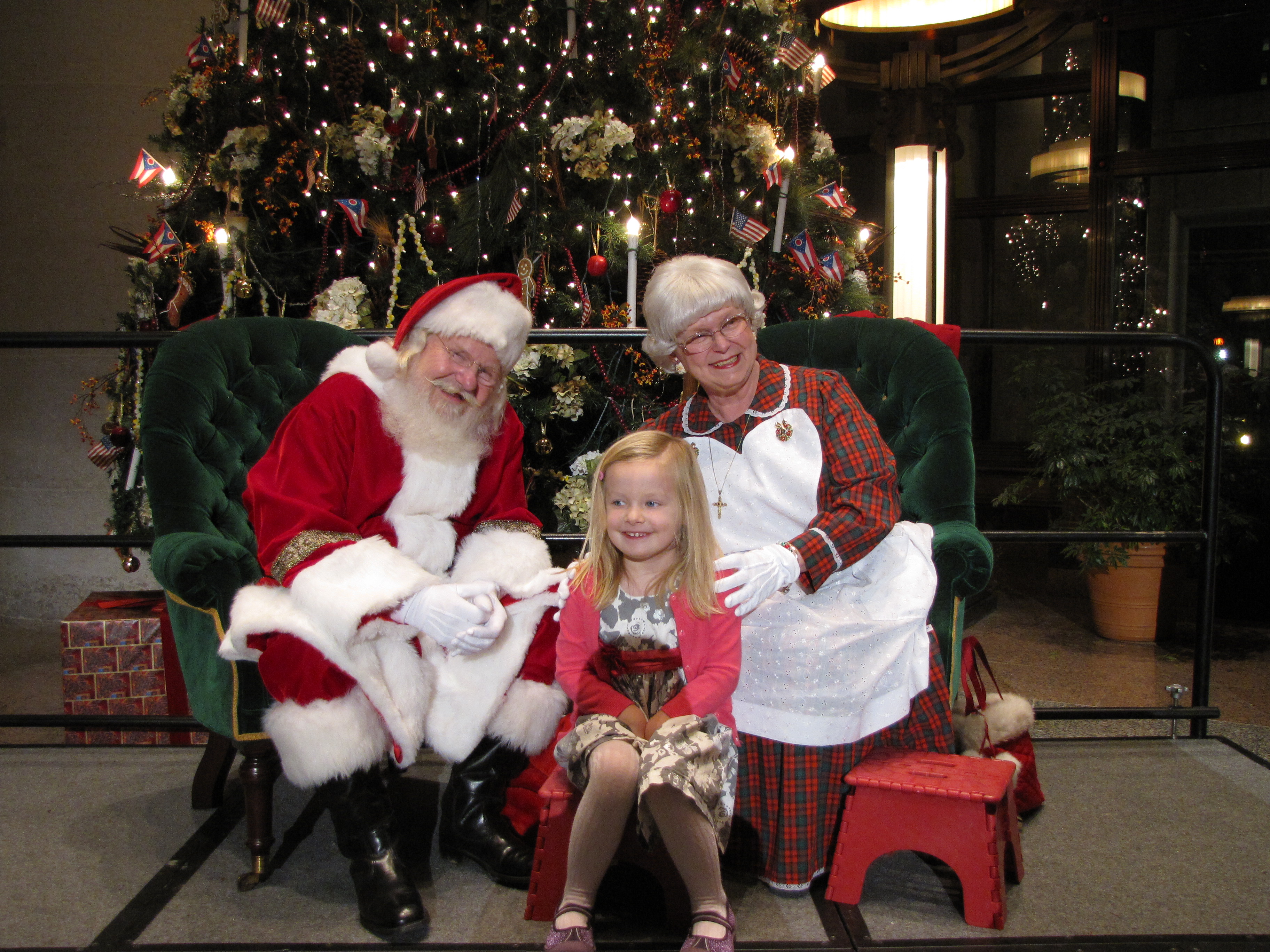 The Ohio Statehouse Holiday Festival and Tree Lighting on Dec. 3, 2013 featured bright lights, community mascots, music, and many activities for kids. Neighbor businesses donated food and drink. Free pictures with Santa and Mrs. Claus are posted on the Statehouse Web site. Click on the picture several times for the highest resolution file. Right click to download your souvenir. Happy Holidays!