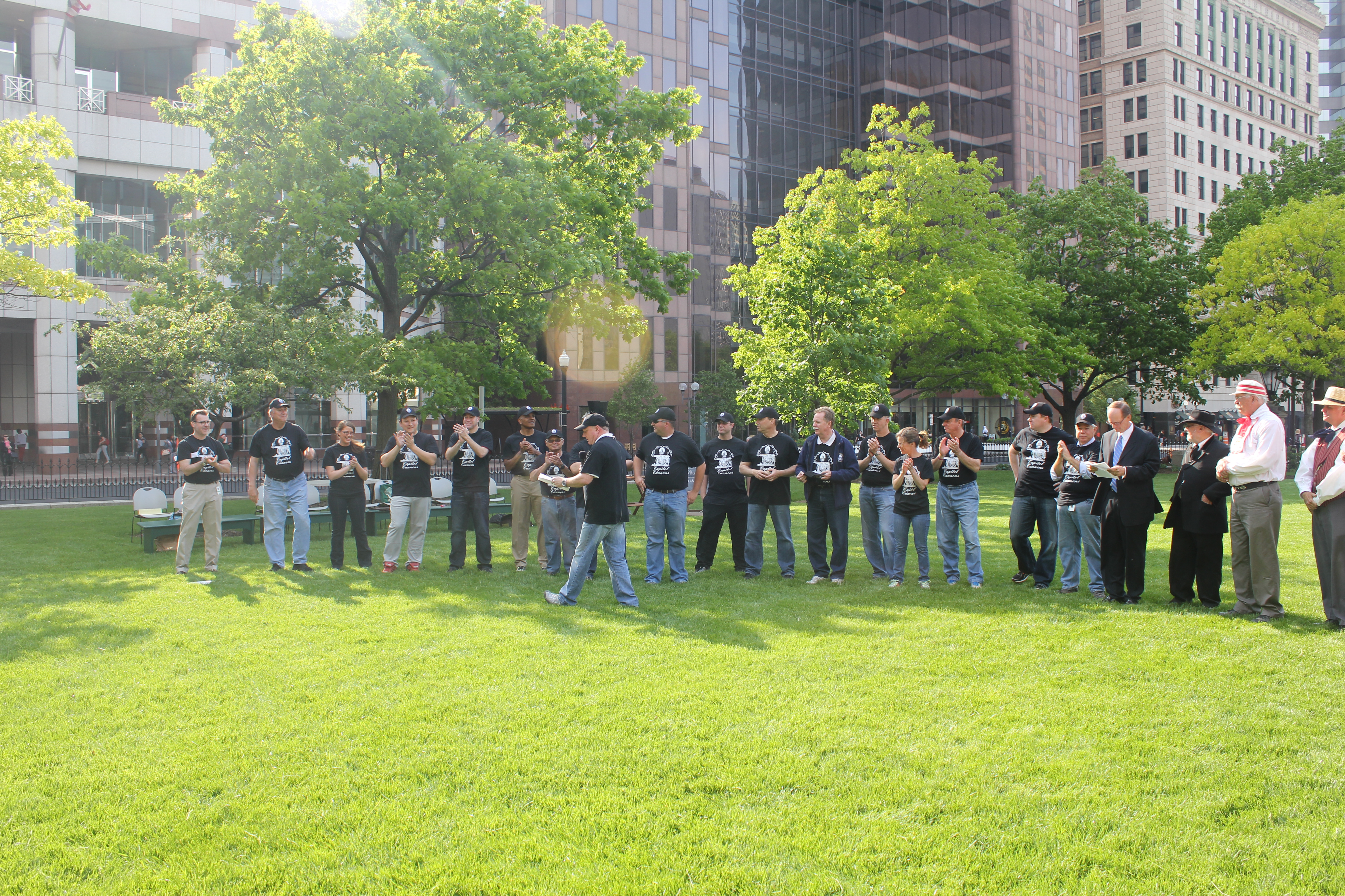 Members of the 130th Ohio General Assembly played a base ball game against the Ohio Village Muffins, Tuesday, May 20. The 2014 "Capitol Cannons" were skippered by Clay Hall, sports director for ABC6/FOX28. The event featured cannon firings by 1st Ohio Light Artillery, Battery A, a display of historic base ball memorabelia by Tracy Martin, Lincoln portrayed by Robert Brugler and the national anthem sung by the Ohio Village Singers. Concessions will be provided by the Capitol Cafe, operated by Milo’s Catering and Banquet Services.