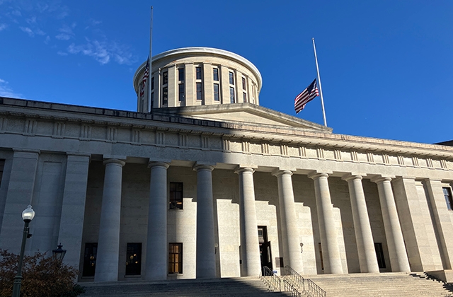 (COLUMBUS, Ohio) —In honor of the life and service of Ohio State Highway Patrol Trooper Nicholas P. Cayton, Ohio Governor Mike DeWine has ordered that the flags of the United States and the State of Ohio shall be flown at half-staff upon all public buildings and grounds throughout Mahoning County, the Ohio Statehouse, the Vern Riffe Center, and the Rhodes State Office Tower today, and will remain until sunset on the day of his funeral.