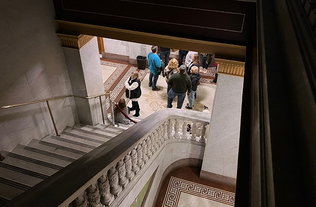 The tours will start in the Museum Gallery on the ground floor of the Ohio Statehouse. RSVP to tours@ohiostatehouse.org by Wednesday, October 29, 2025. Please note all visitors will have to go through security, so any weapons as part of costumes will be confiscated.