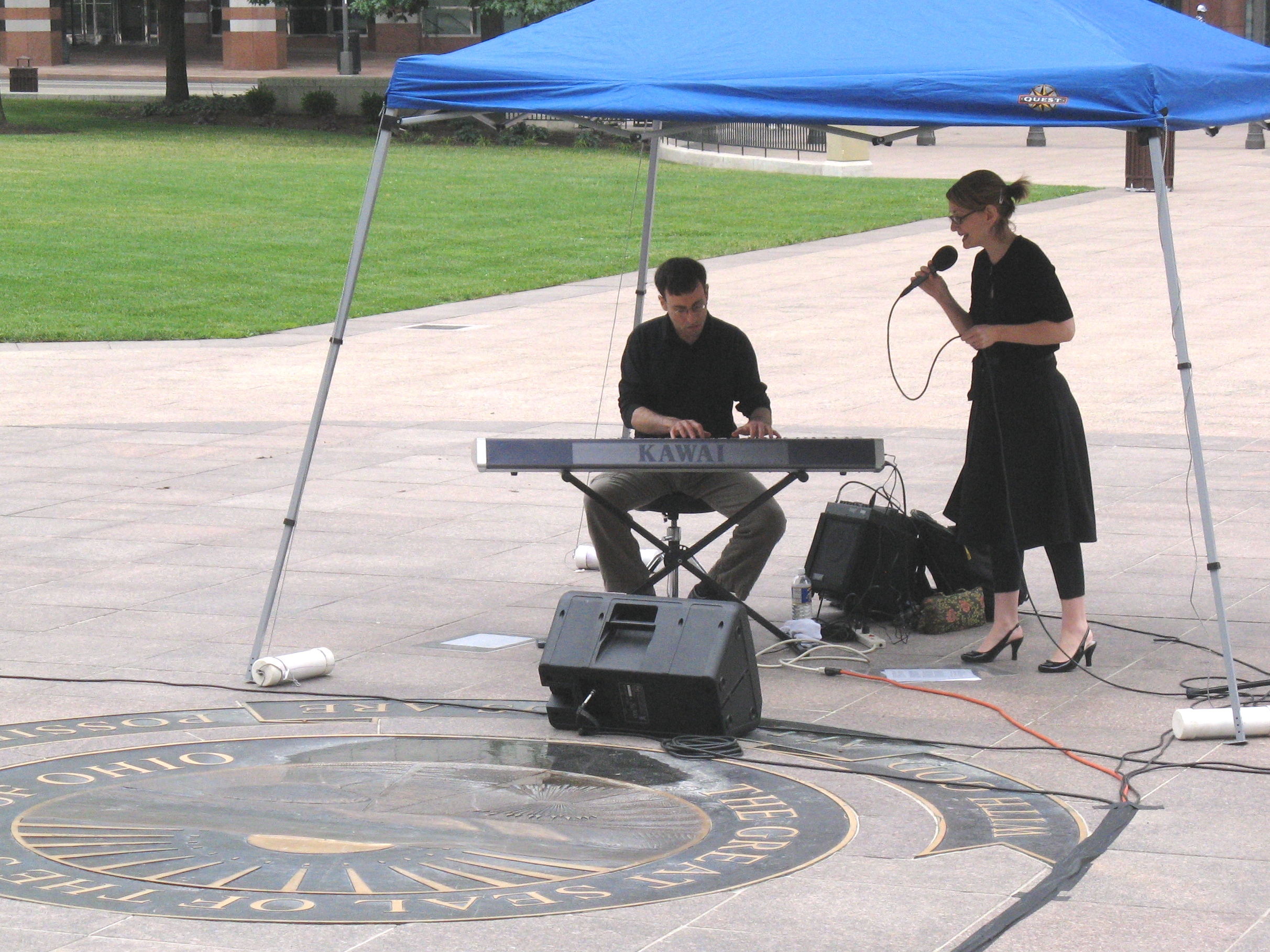 Jazz musicians Erik Augis and Lisa Clark Duo from the Creekside Blues and Jazz Festival in Gahanna gave a free performance at the Ohio Statehouse on June 12, 2009. You are invited to bring your lunch from noon to 1 p.m. and enjoy Summer Fridays at the Ohio Statehouse from May 29 to Sept. 4, 2009. Check ohiostatehouse.org for more information. Media sponsors: CD101 and WDEM Ch 17 TV.