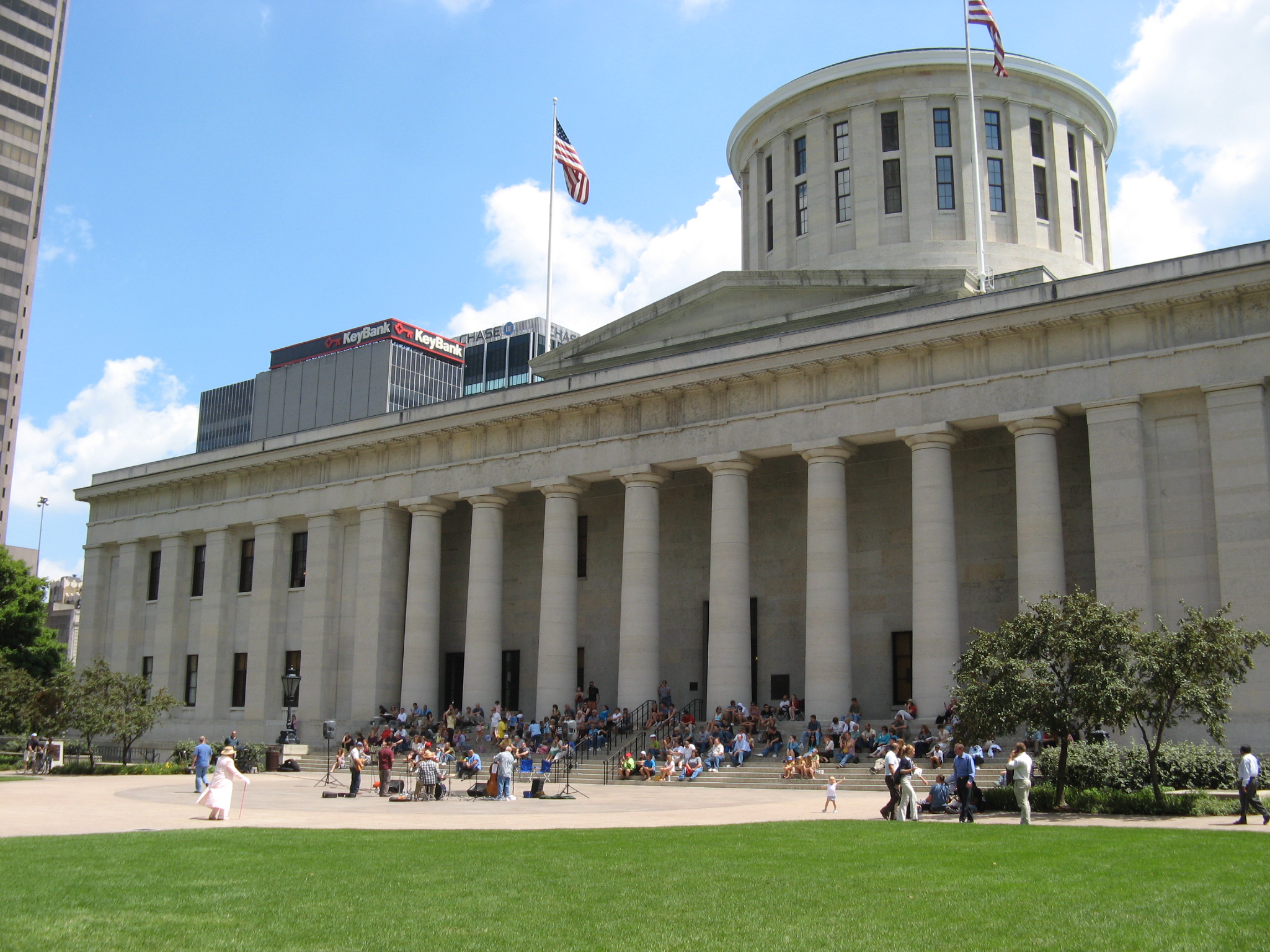 The Idiot Boys, a bluegrass band, gave a free performance at the Ohio Statehouse on July 31, 2009. You are invited to bring your lunch from noon to 1 p.m. and enjoy Summer Fridays at the Ohio Statehouse from May 29 to Sept. 4, 2009. Check ohiostatehouse.org for more information. Media sponsors: CD101 and WDEM Ch 17 TV.