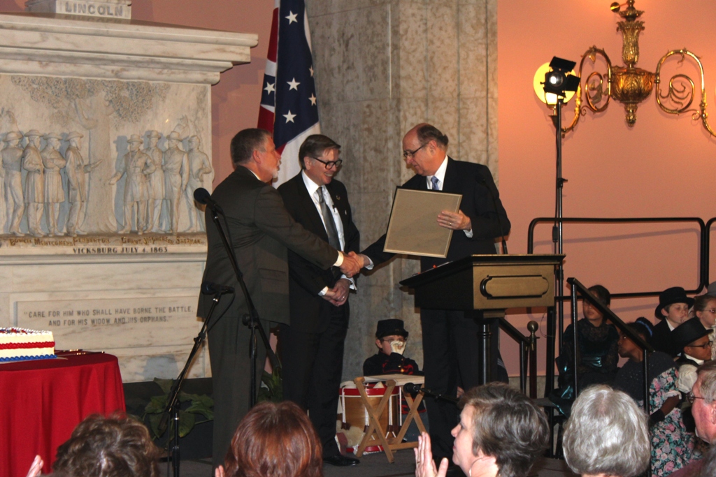 The Ohio Statehouse celebrated it's 150th birthday on Nov. 15, 2011. A great crowd of people gathered in the Rotunda for this commemorative photo taken by Dan Shellenbarger of The Ohio Channel. The Statehouse Museum Shop hosted the Capitol Artists Fair on the same day.