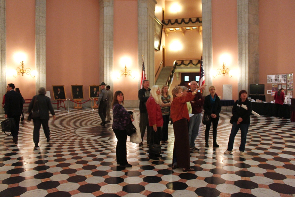 The Ohio Statehouse celebrated it's 150th birthday on Nov. 15, 2011. A great crowd of people gathered in the Rotunda for this commemorative photo taken by Dan Shellenbarger of The Ohio Channel. The Statehouse Museum Shop hosted the Capitol Artists Fair on the same day.