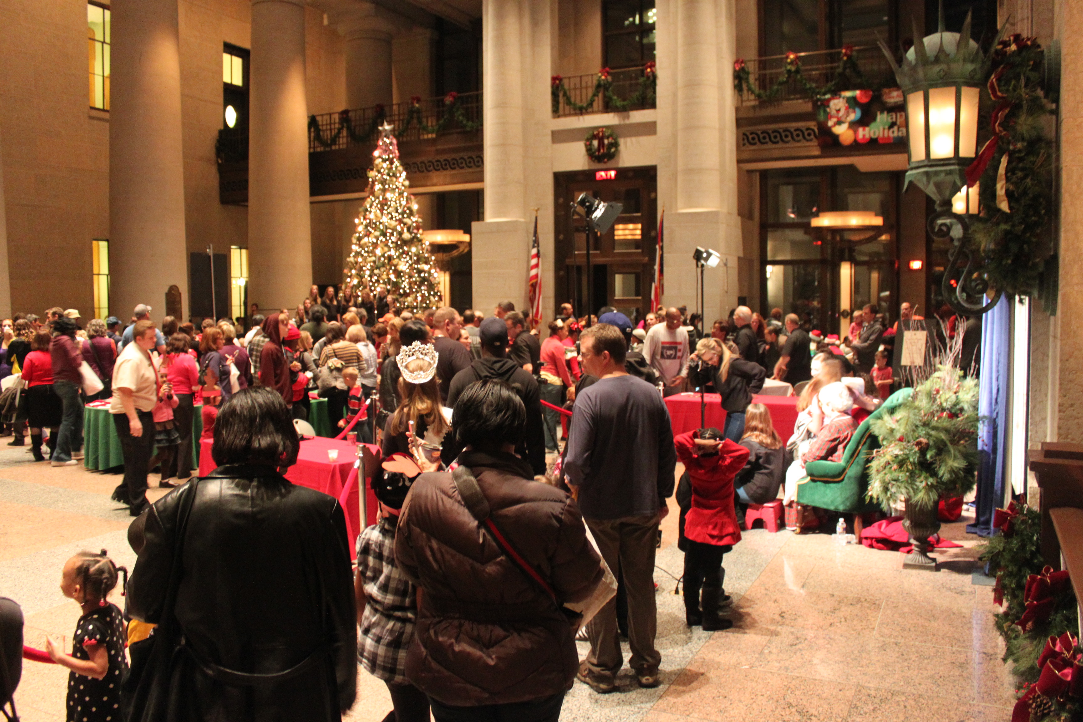 The 2012 Ohio Statehouse Tree Lighting and Holiday Festival on Dec. 3, included a welcome by Sen. Richard Finan, entertainment by Ohio musicians, mascots and performers, refreshments by Tim Hortons and caterers, a visit from Santa and Mrs. Claus, and the generous help from many, many volunteers. Video can be seen here -- http://www.OhioChannel.org/MediaLibrary/Media.aspx?fileId=134216