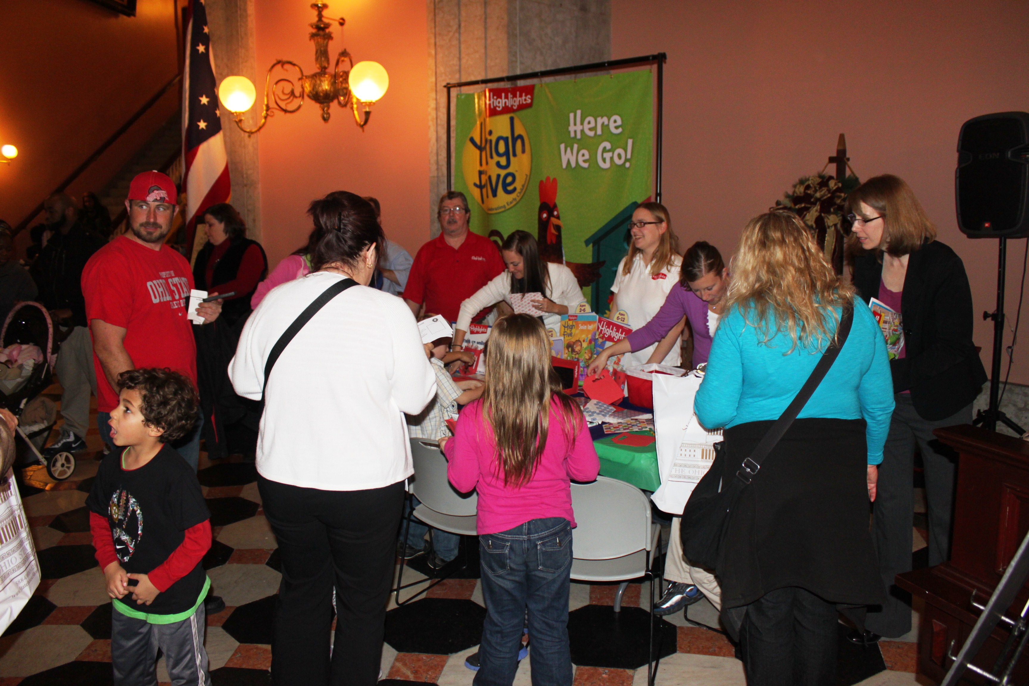 The 2012 Ohio Statehouse Tree Lighting and Holiday Festival on Dec. 3, included a welcome by Sen. Richard Finan, entertainment by Ohio musicians, mascots and performers, refreshments by Tim Hortons and caterers, a visit from Santa and Mrs. Claus, and the generous help from many, many volunteers. Video can be seen here -- http://www.OhioChannel.org/MediaLibrary/Media.aspx?fileId=134216