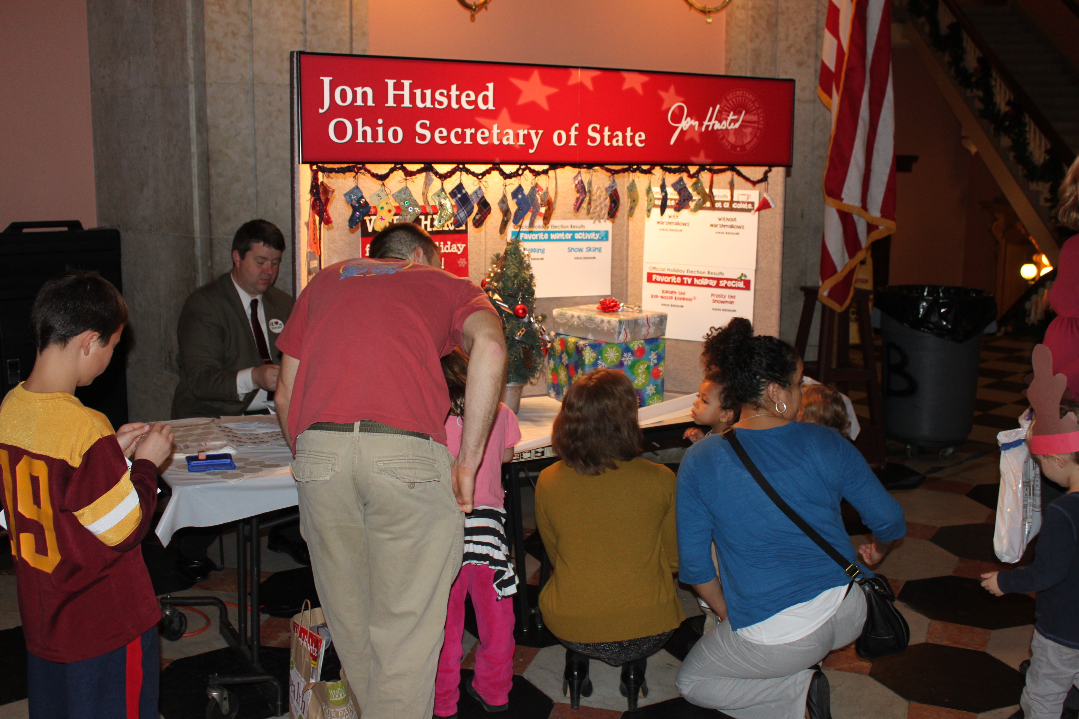 The 2012 Ohio Statehouse Tree Lighting and Holiday Festival on Dec. 3, included a welcome by Sen. Richard Finan, entertainment by Ohio musicians, mascots and performers, refreshments by Tim Hortons and caterers, a visit from Santa and Mrs. Claus, and the generous help from many, many volunteers. Video can be seen here -- http://www.OhioChannel.org/MediaLibrary/Media.aspx?fileId=134216
