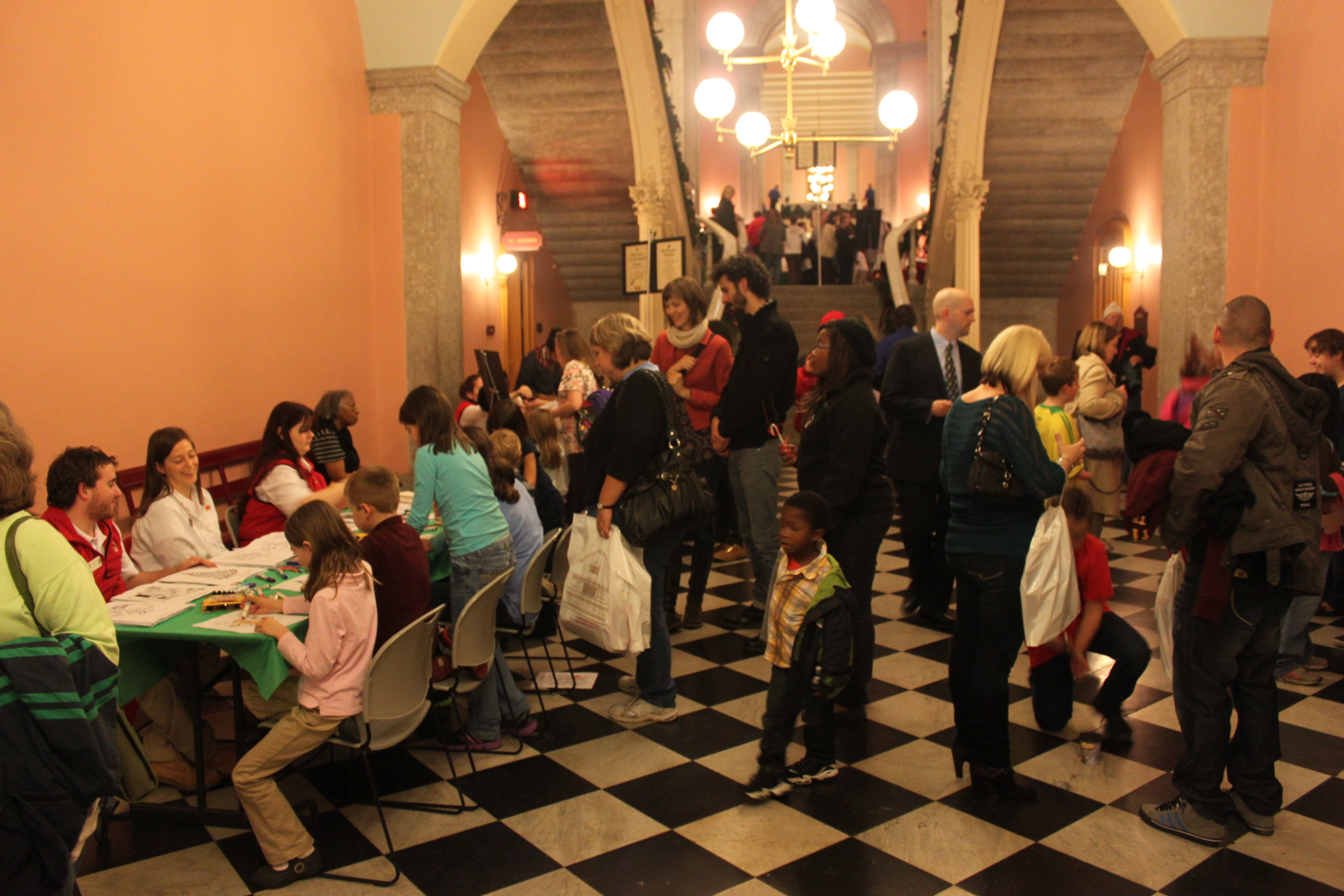 The 2012 Ohio Statehouse Tree Lighting and Holiday Festival on Dec. 3, included a welcome by Sen. Richard Finan, entertainment by Ohio musicians, mascots and performers, refreshments by Tim Hortons and caterers, a visit from Santa and Mrs. Claus, and the generous help from many, many volunteers. Video can be seen here -- http://www.OhioChannel.org/MediaLibrary/Media.aspx?fileId=134216