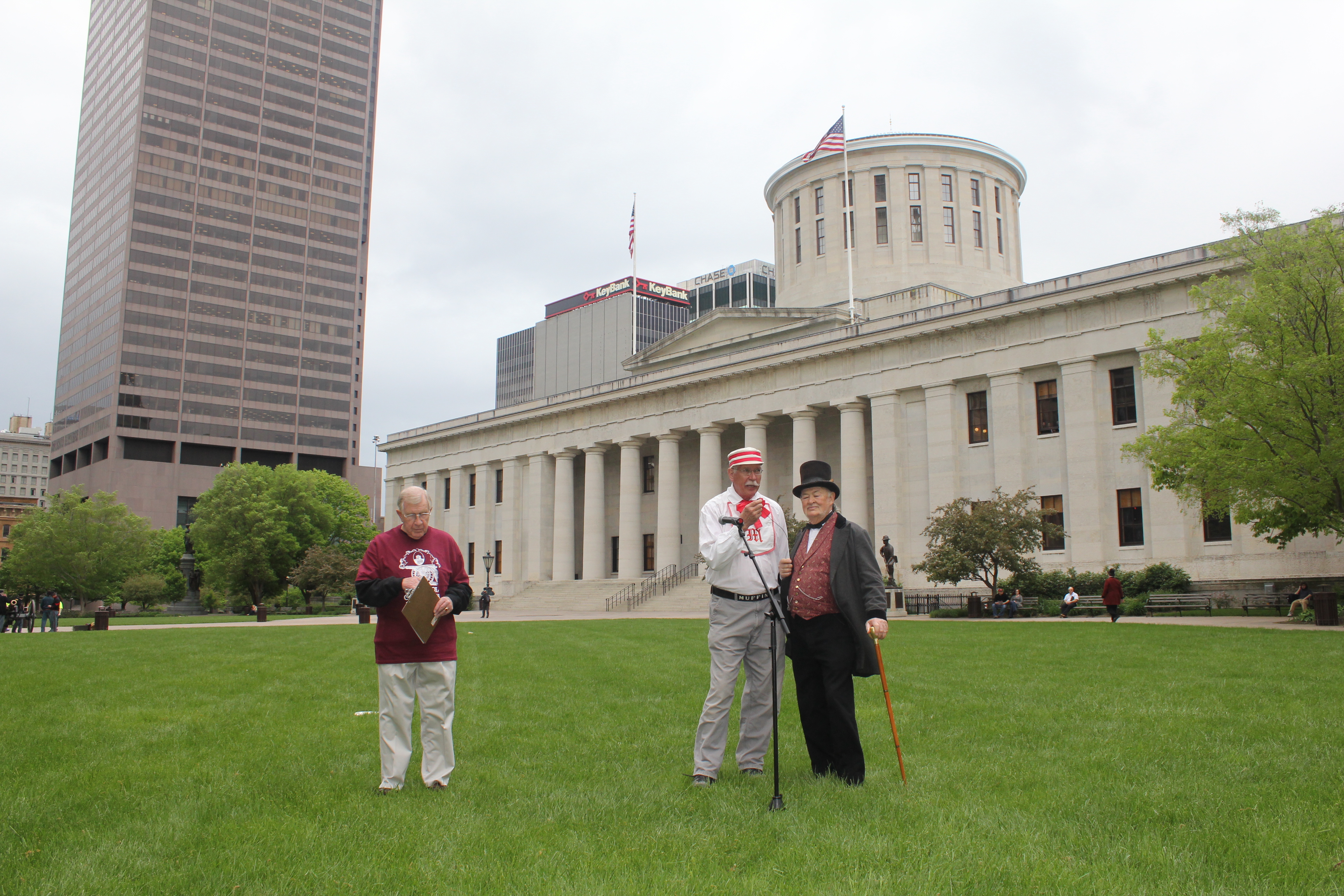 A vintage base ball game was played on May 7, 2013 at the Ohio Statehouse. The Ohio Village Muffins played the Capitol Cannons, members of the Ohio General Assembly. The event was sponsored by the Ohio Lobbying Association.