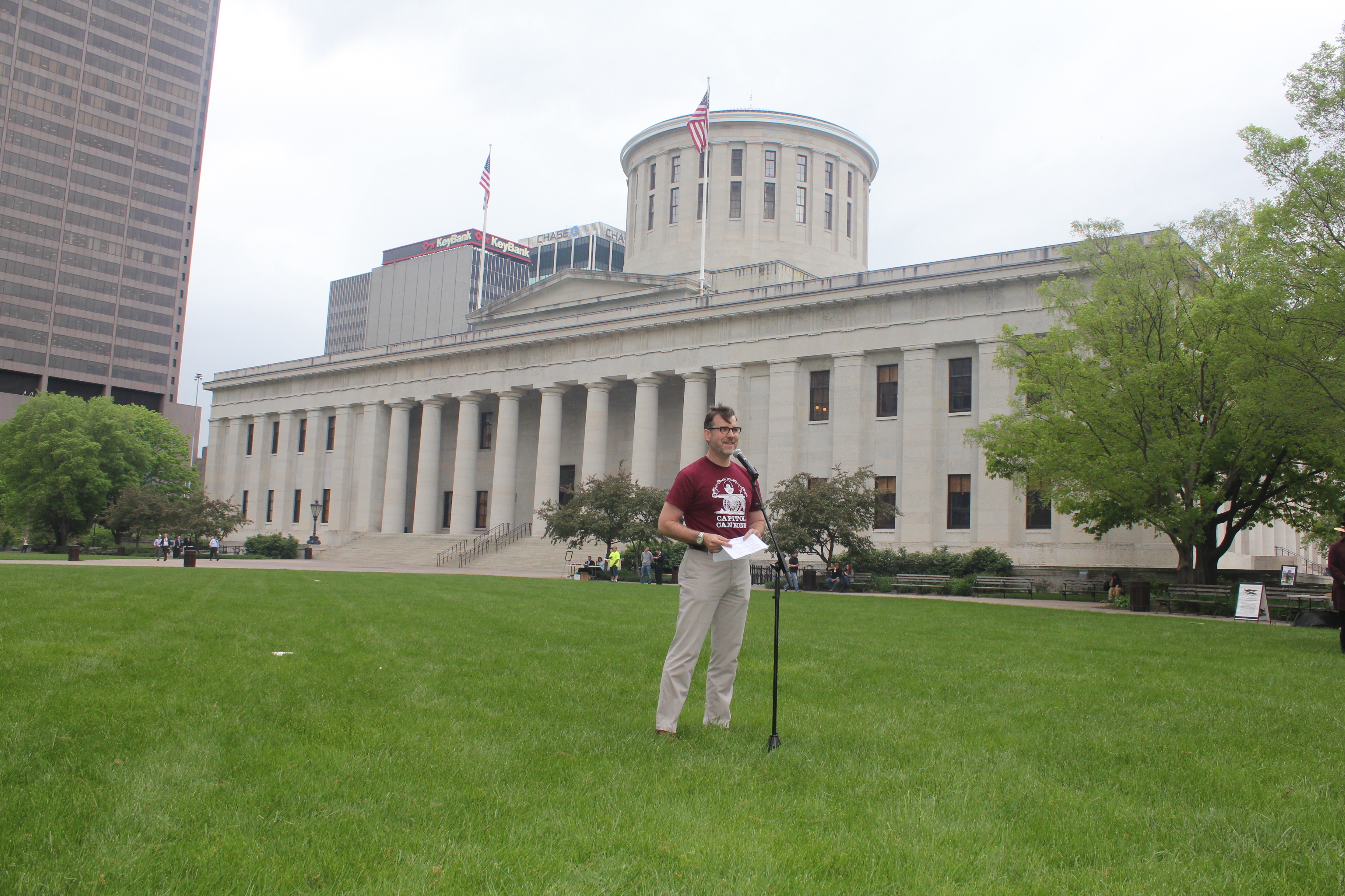 A vintage base ball game was played on May 7, 2013 at the Ohio Statehouse. The Ohio Village Muffins played the Capitol Cannons, members of the Ohio General Assembly. The event was sponsored by the Ohio Lobbying Association.