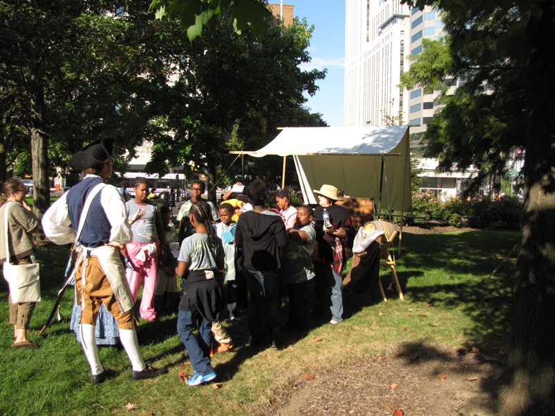 Honor students from Archbishop Hoban High School (Akron, OH) taught Ohio Statehouse visitors about camp life as a member of the Continental Army in 1778. Visitors to the educational program, supported by a grant from the Mount Vernon Ladies' Association, also met General George Washington!