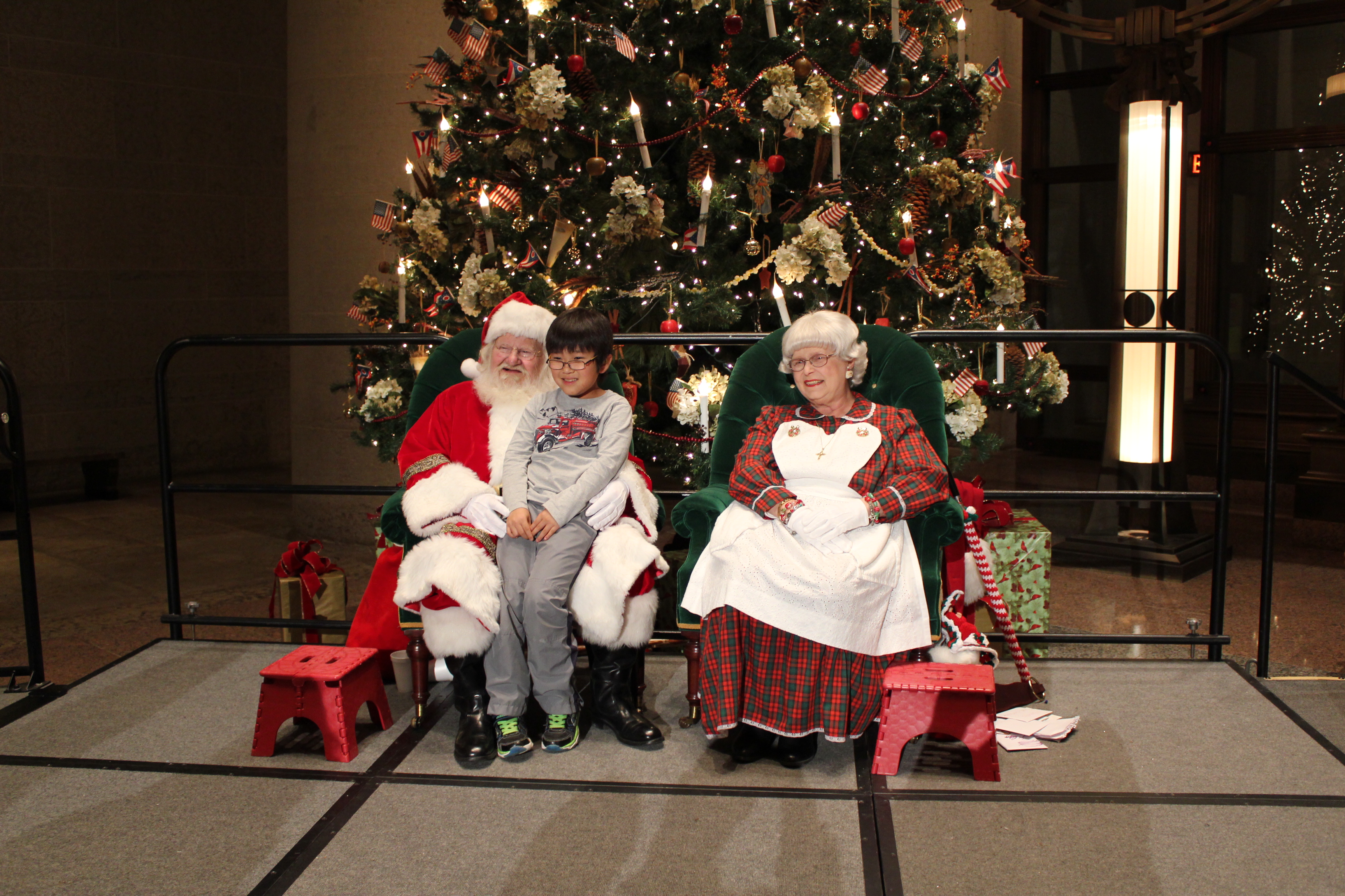 The 2015 Ohio Statehouse Holiday Festival and Tree Lighting, Dec. 1, included entertainment by Ohio musicians, mascots and performers, refreshments by Starbucks, Milo's and caterers, a visit from Santa and Mrs. Claus, and the generous help from many, many volunteers. These photos were taken by the Young Professionals of the Columbus Board of REALTORS. Thanks!