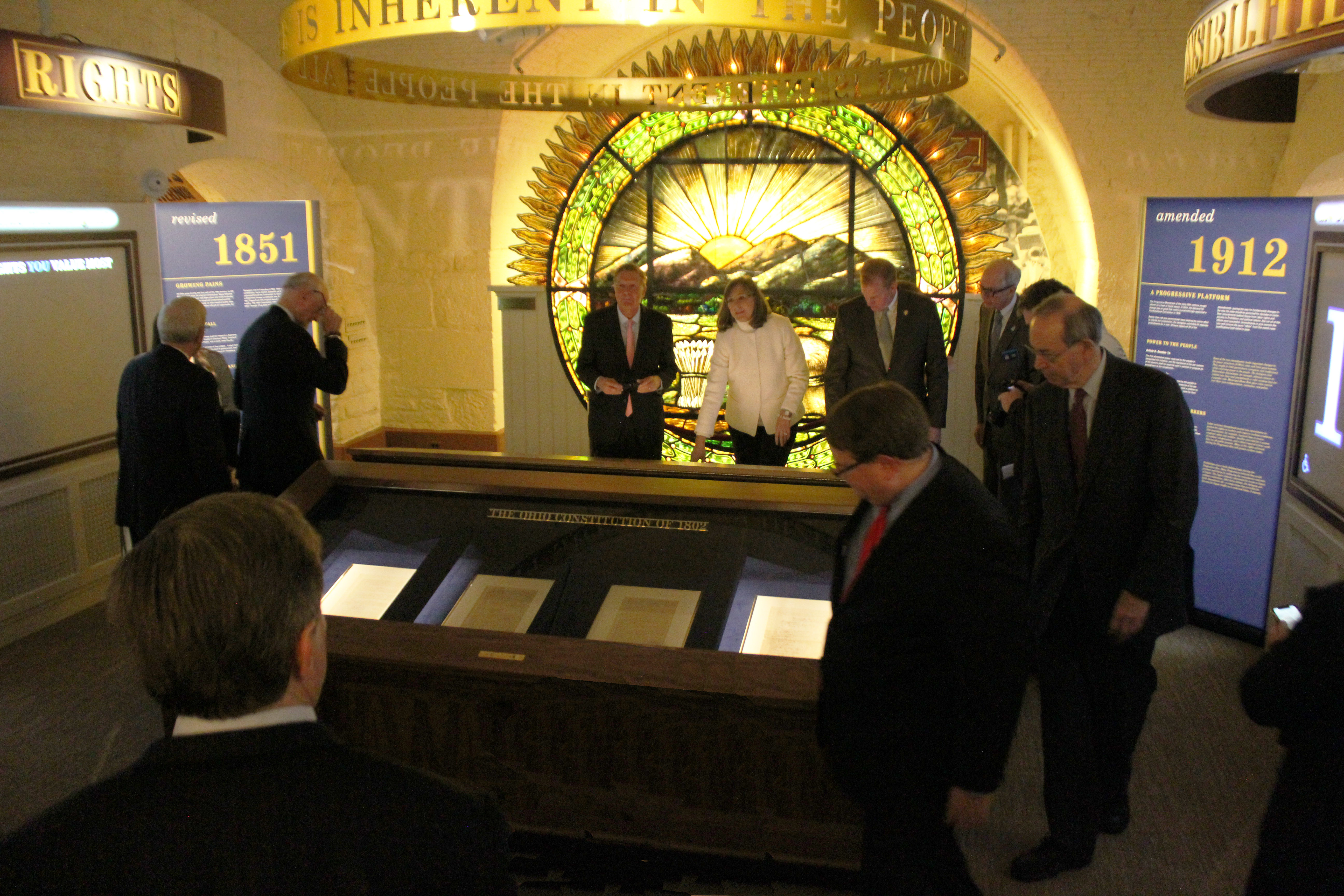 A new Ohio Constitution exhibit was unveiled at the Ohio Statehouse, Nov. 28, 2018. The display includes authentic pages of the 1802 and 1851 state constitutions. All three branches of government were represented with special speeches during the ceremony. Former governors, Senate presidents, House speakers and other dignitaries were in attendance.