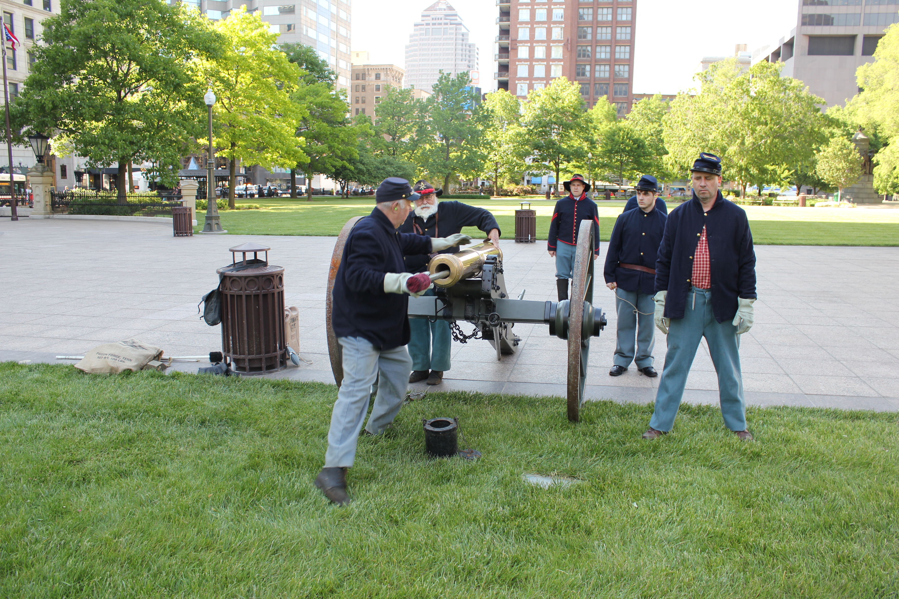 A vintage base ball game was played on the Ohio Statehouse lawn May 24, 2016. Capitol Cannons vs. Ohio Village Muffins for the Richard Schuricht Cup. The Capitol Cannons is made up of members of the Ohio General Assembly, Ohio senators and representatives. Vintage equipment displayed by Tracy Martin. Pennant table by Ohio Statehouse Museum Education Center. Concessions by Paddy Wagon and Milo's Capitol Cafe. Cannon firing by 1st Ohio Light Artillery, Battery A. National Anthem by Lindsey Brigano, Ohio Senate staff.