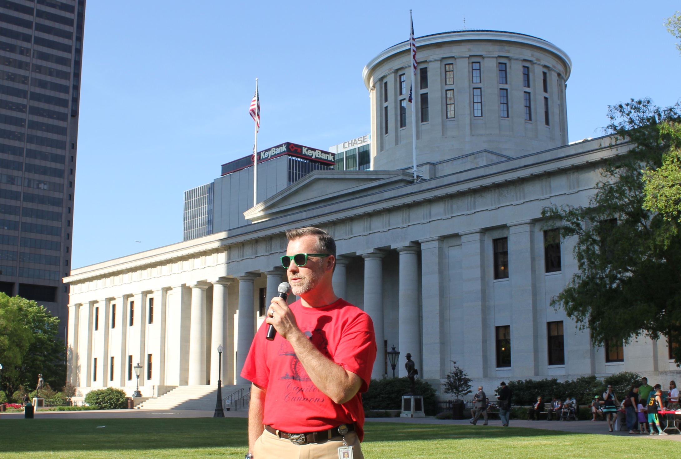 A vintage base ball game was played on the Ohio Statehouse lawn May 24, 2016. Capitol Cannons vs. Ohio Village Muffins for the Richard Schuricht Cup. The Capitol Cannons is made up of members of the Ohio General Assembly, Ohio senators and representatives.