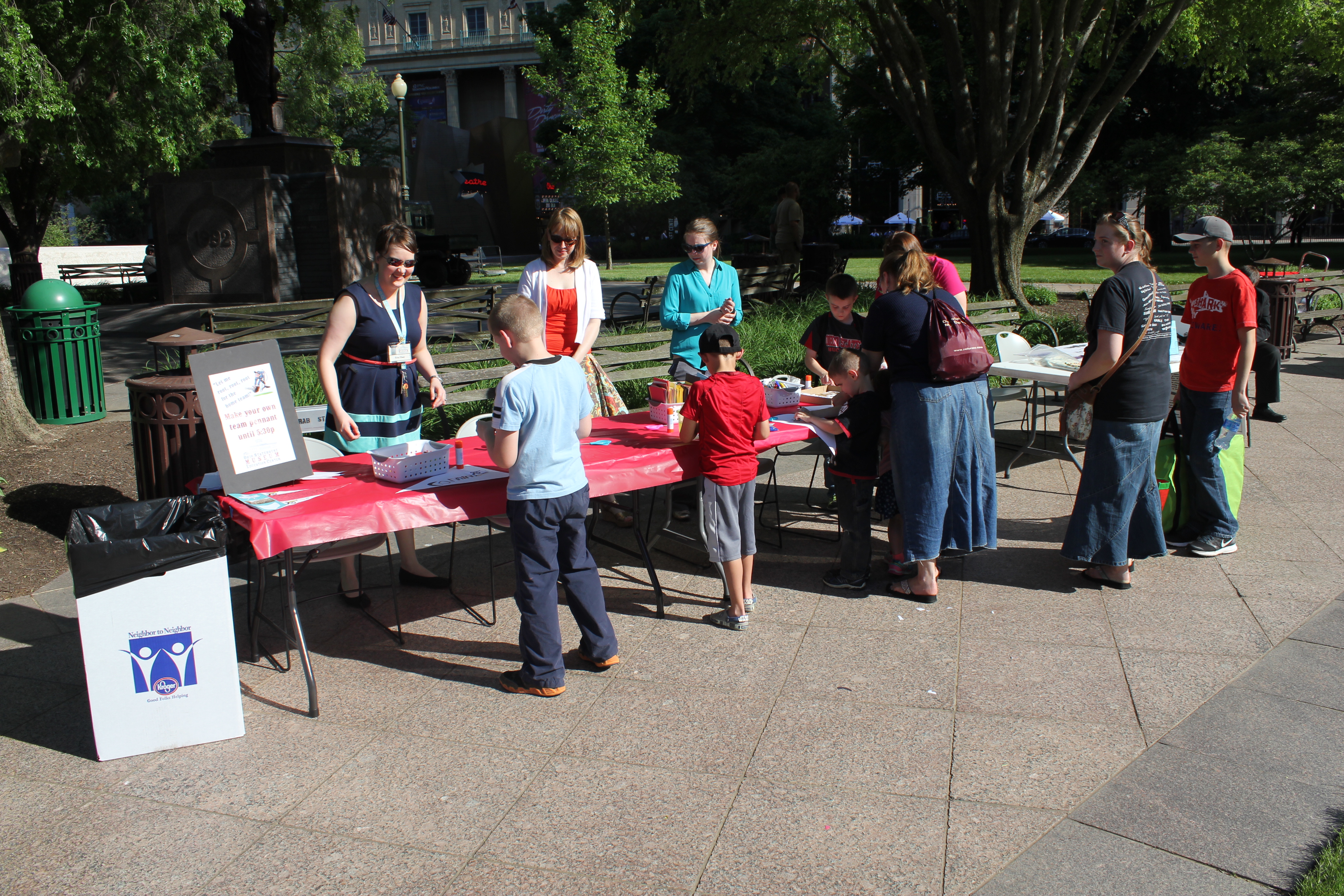 A vintage base ball game was played on the Ohio Statehouse lawn May 24, 2016. Capitol Cannons vs. Ohio Village Muffins for the Richard Schuricht Cup. The Capitol Cannons is made up of members of the Ohio General Assembly, Ohio senators and representatives. Vintage equipment displayed by Tracy Martin. Pennant table by Ohio Statehouse Museum Education Center. Concessions by Paddy Wagon and Milo's Capitol Cafe. Cannon firing by 1st Ohio Light Artillery, Battery A. National Anthem by Lindsey Brigano, Ohio Senate staff.