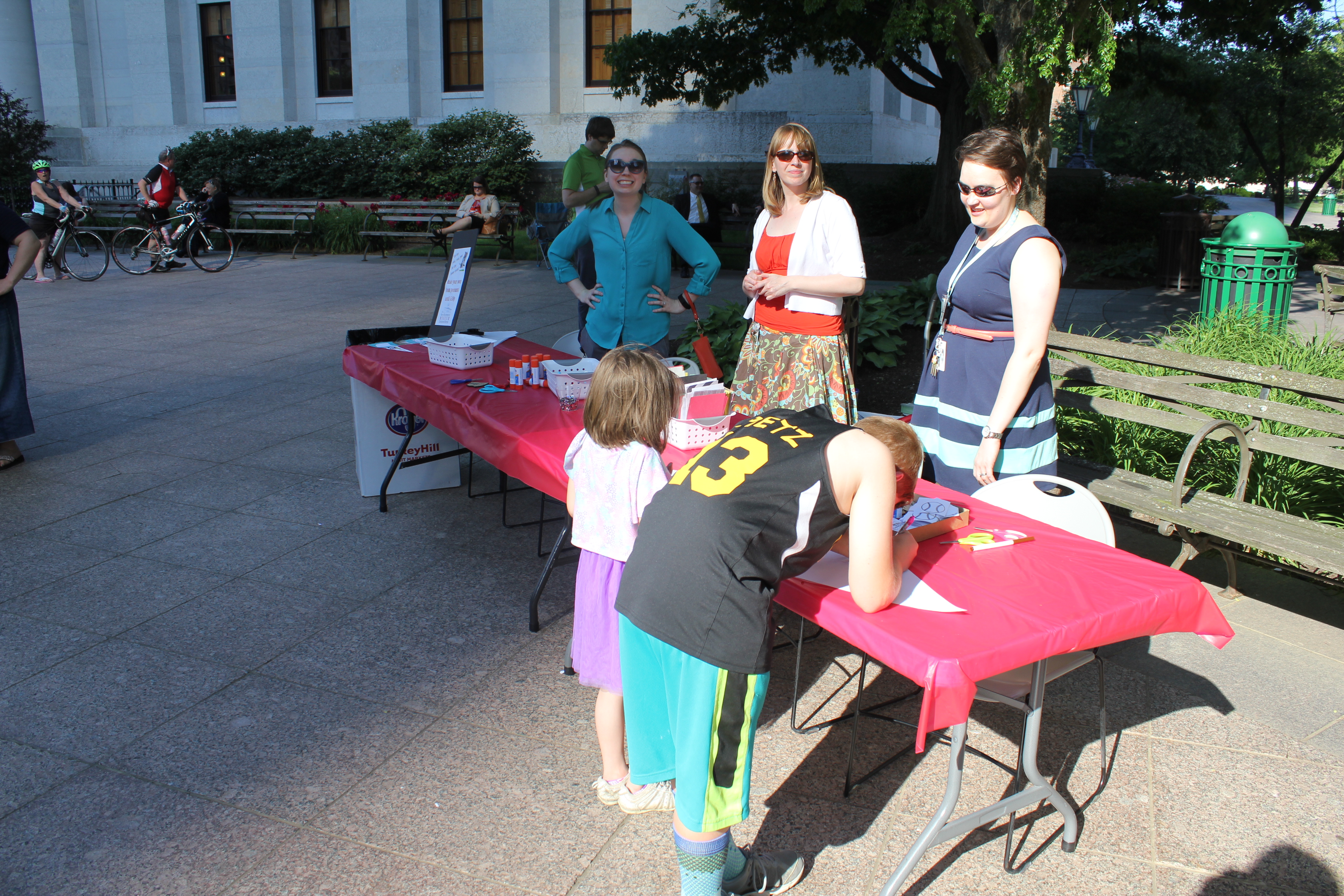 A vintage base ball game was played on the Ohio Statehouse lawn May 24, 2016. Capitol Cannons vs. Ohio Village Muffins for the Richard Schuricht Cup. The Capitol Cannons is made up of members of the Ohio General Assembly, Ohio senators and representatives. Vintage equipment displayed by Tracy Martin. Pennant table by Ohio Statehouse Museum Education Center. Concessions by Paddy Wagon and Milo's Capitol Cafe. Cannon firing by 1st Ohio Light Artillery, Battery A. National Anthem by Lindsey Brigano, Ohio Senate staff.