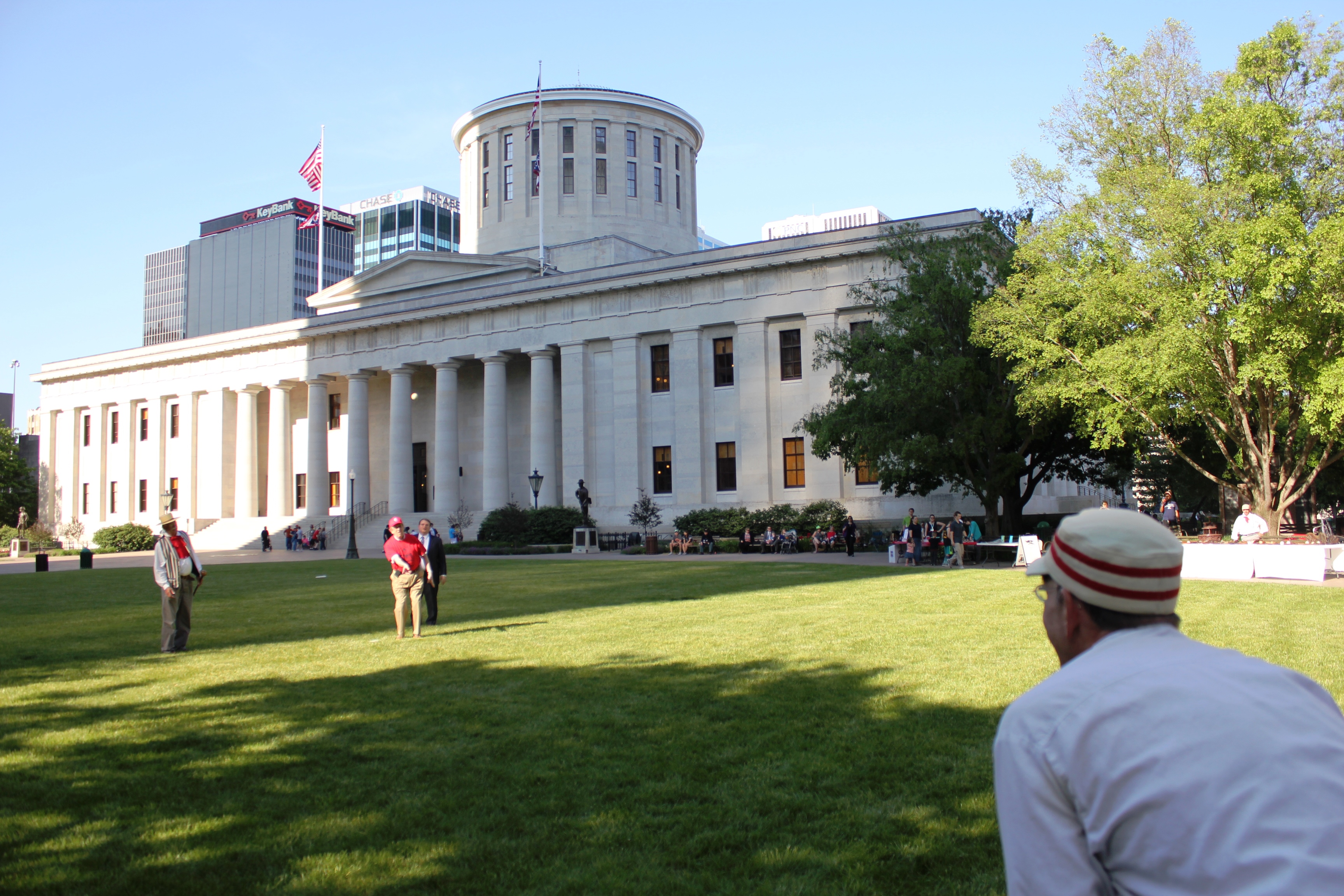 A vintage base ball game was played on the Ohio Statehouse lawn May 24, 2016. Capitol Cannons vs. Ohio Village Muffins for the Richard Schuricht Cup. The Capitol Cannons is made up of members of the Ohio General Assembly, Ohio senators and representatives.