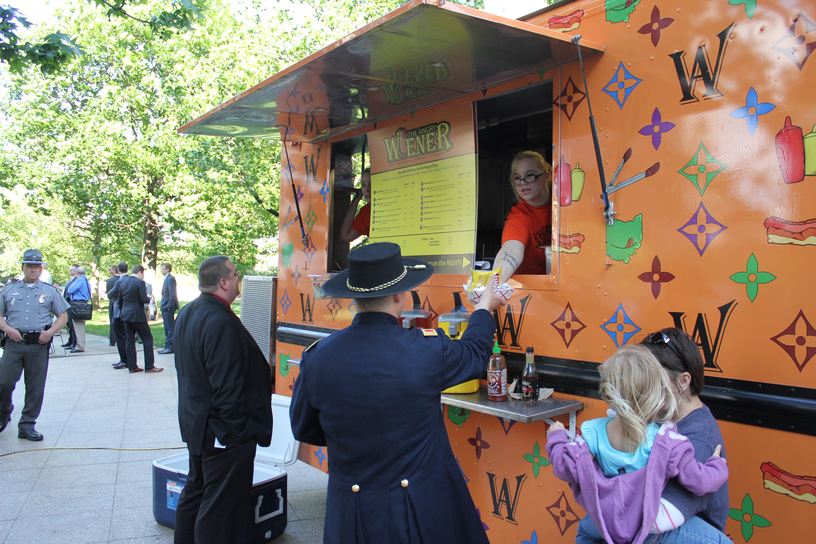 A vintage base ball game was played on the Ohio Statehouse lawn May 19, 2015. Capitol Cannons vs. Ohio Village Muffins for the Richard Schuricht Cup. Sponsored by the Ohio Lobbying Association (Kurt Leib, president) and Capitol Square Reveiw and Advisory Board (William Carleton, exec. director). Thanks to Ohio Village Singers for the national anthem, and to 1st Ohio Light Artillery, Battery A for the cannon firing. Concessions were by Milo's Capitol Cafe and the Angry Wiener Food Truck. Tracy Martin displayed his collection of vintage base ball items. Announcers were Andy Chow, Ohio Public Radio; Vince Tornero, Muffins and Robb Eshenbaugh, Ohio Lobbying Assn.